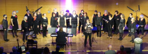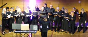 Der evangelische Kirchenchor unter der Leitung von Malte Bechtold probt zwar in der Nachbargemeinde Steinbach, hat aber viele Mitglieder aus Niederhöchstadt und ist deshalb fester Bestandteil der Eschborner Chorlandschaft. Dieser Chor hat sich der feinen Nuancierung verschrieben; mit präzisen Tempi und einer ausgefeilten Dynamik werden wunderschöne Klanggebilde wie “Dirait-on” von Morten Lauridsen nach einem Gedicht von Rainer Maria Rilke und das anspruchsvolle “Sicut cervus” von Palestrina auf die Bühne gezaubert. Das fröhliche “Tout est fait” animiert das Publikum zum Mitklatschen, und mit “Heavenly Peace shall be with you” wird den Zuhörern ein ergreifender Segen mit auf den Weg gegeben.