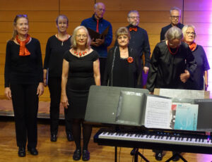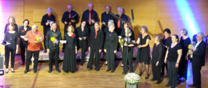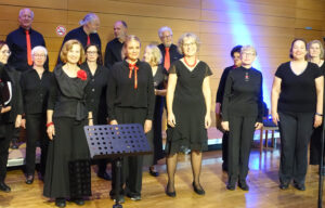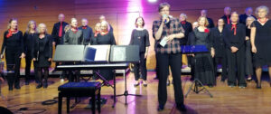 Unser gemischter Chor singfonie umrahmt den Abend mit jeweils drei Stücken zu Beginn und zum Ende. Unter der Leitung von Manfred Bender erklingen zunächst so vertraute Lieder wie Eichendorffs “Abschied vom Walde”, vertont von Mendelssohn-Bartholdy, und Mozarts “Ave verum corpus”, aber auch das von der Österreicherin Brigitte Hubmann kurz vor ihrem Tod gedichtete “Tråg mi, Wind” in einer anrührenden Komposition von Christian Dreo.